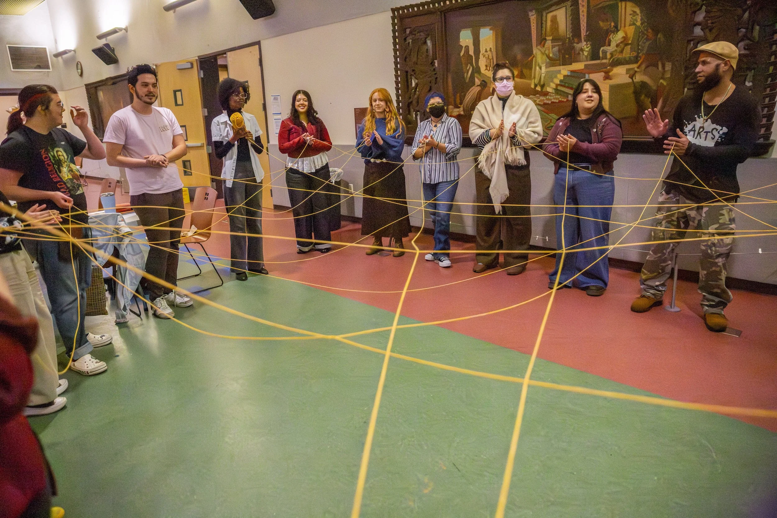 Our new ARTS on Campus Program Coordinator, David Peña, led us in starting the day by weaving our connections together, sharing our roles, and asking, “How do you show care in your life?” We found common themes among us, which helped set a tone of connection and teamwork for the day.